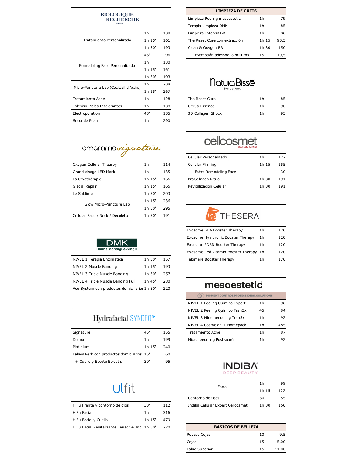 Precios tratamientos de belleza en Barcelona